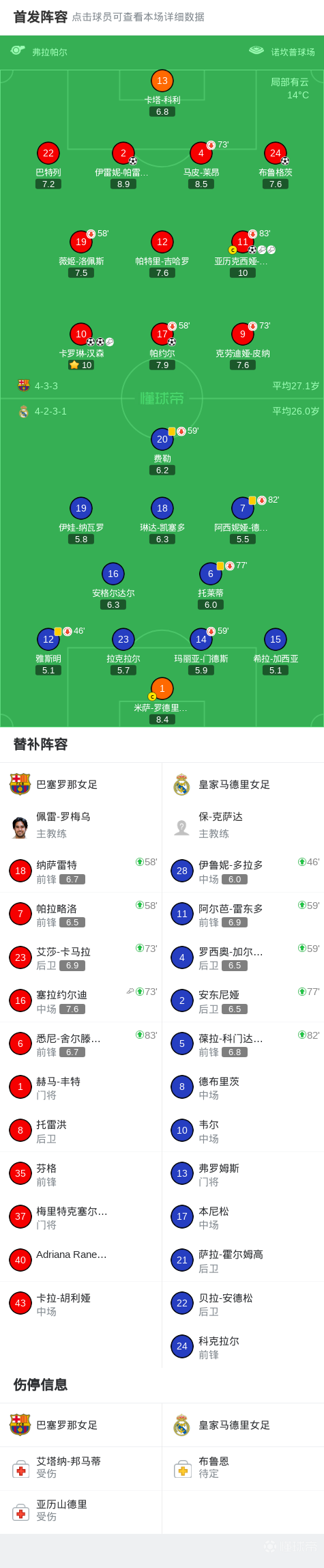 第27分钟,巴塞罗那女足球员卡罗琳-汉森助攻伊雷妮-帕雷德斯打入一球。